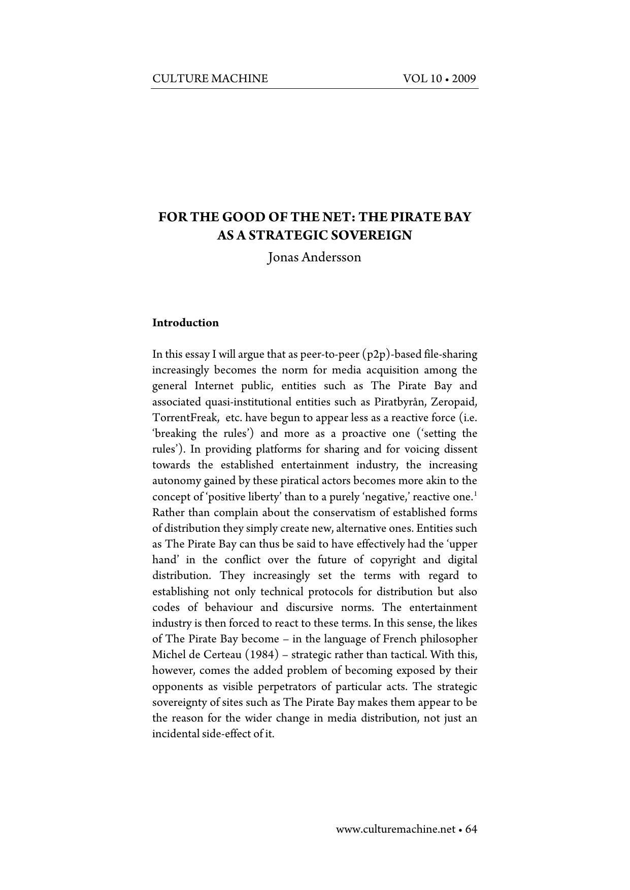 For the good of the net_ The Pirate Bay as strategic sovereign (619)
