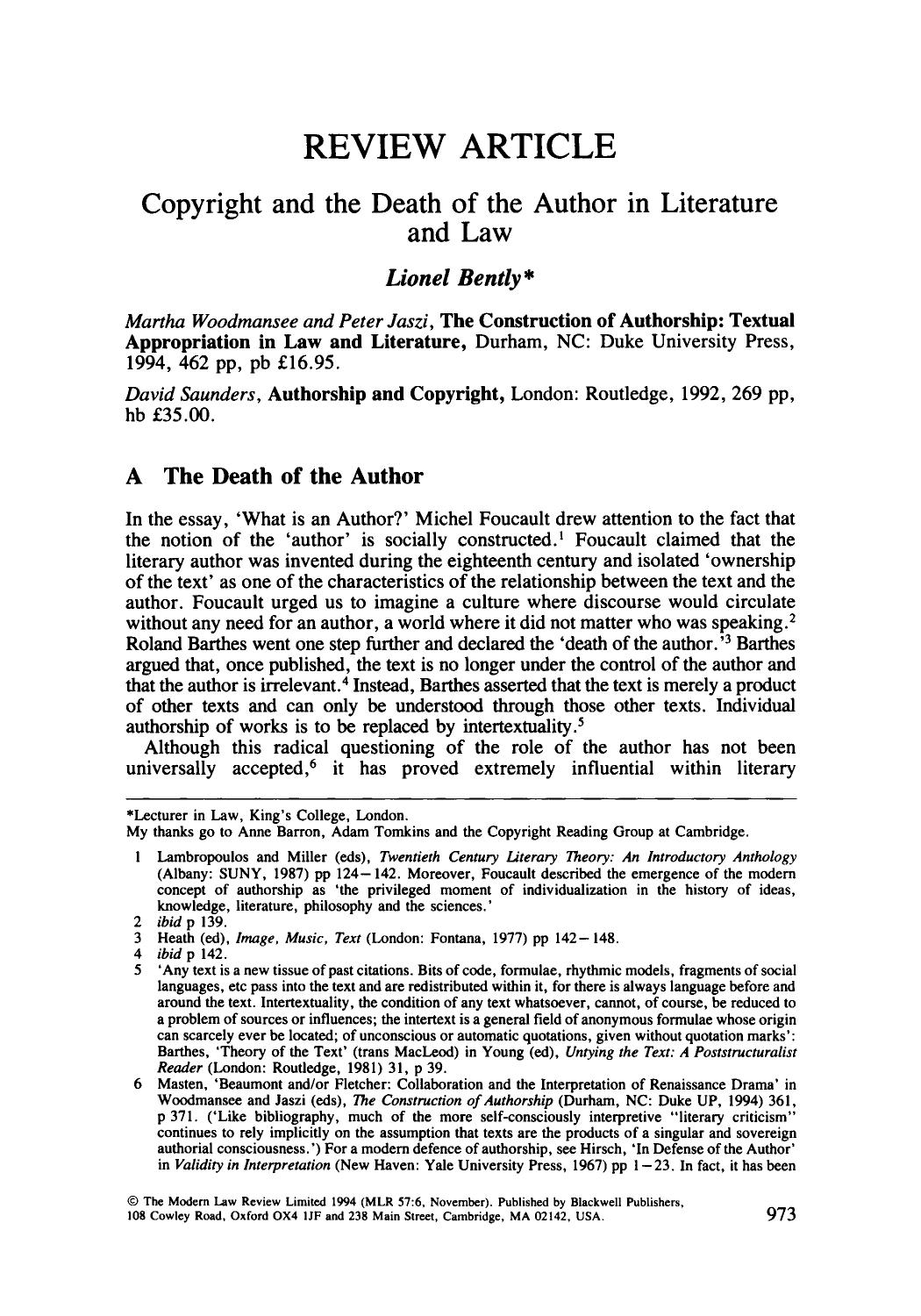 Copyright and the Death of the Author in L - Lionel Bently.pdf